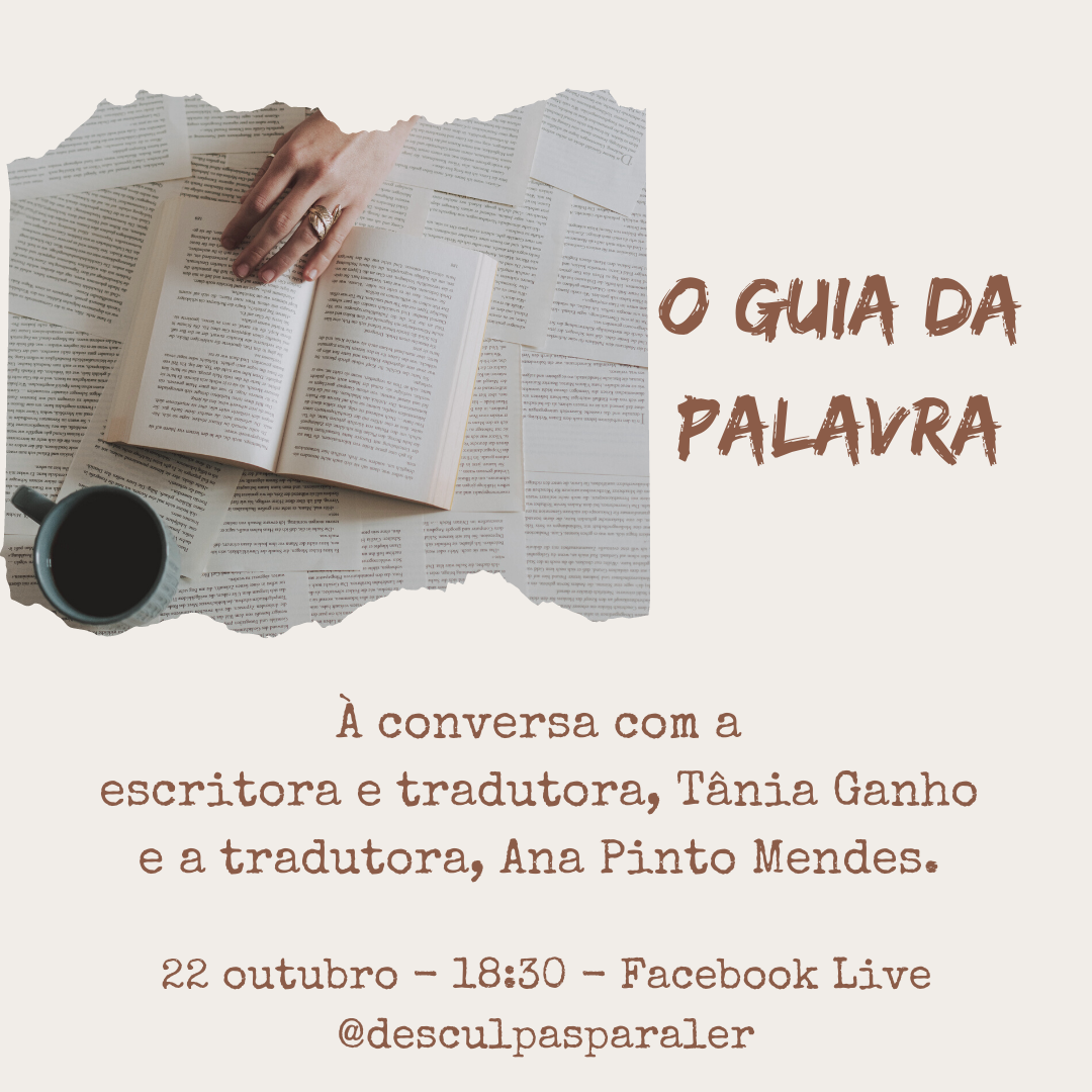 - 29 de outubro: À conversa com a escritora e tradutora, Tânia Ganho e a tradutora, Ana Pinto Mendes. (Entrada Livre) – 18:30 – Facebook Live @desculpasparaler